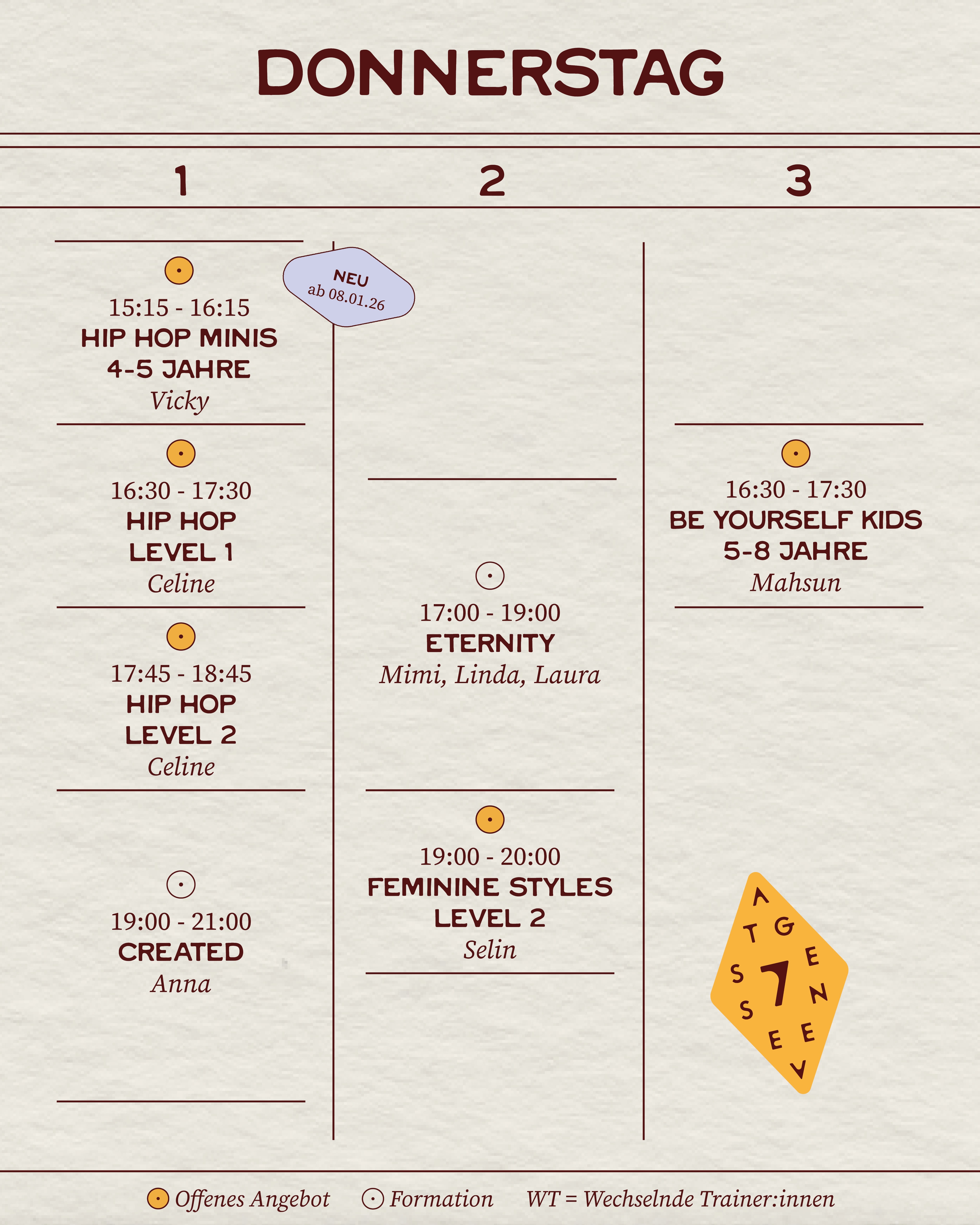 Home for Dance – auch schon bevor wir ein Zuhause hatten. Seit 2015 ist Stage Seven mehr als ein Tanzverein. Wir sind ein Ort für Bewegung, Begegnung und Ausdruck – offen für alle, die Lust auf Tanz und Community haben. Seit zehn Jahren bringen wir urbanen Tanz nach Lohne – mit über 30 Kursen für jedes Alter und jedes Level. Egal, ob Du gerade erst anfängst oder schon lange im Rhythmus bist: Bei uns bist Du willkommen. Let’s dance, connect & grow – together.